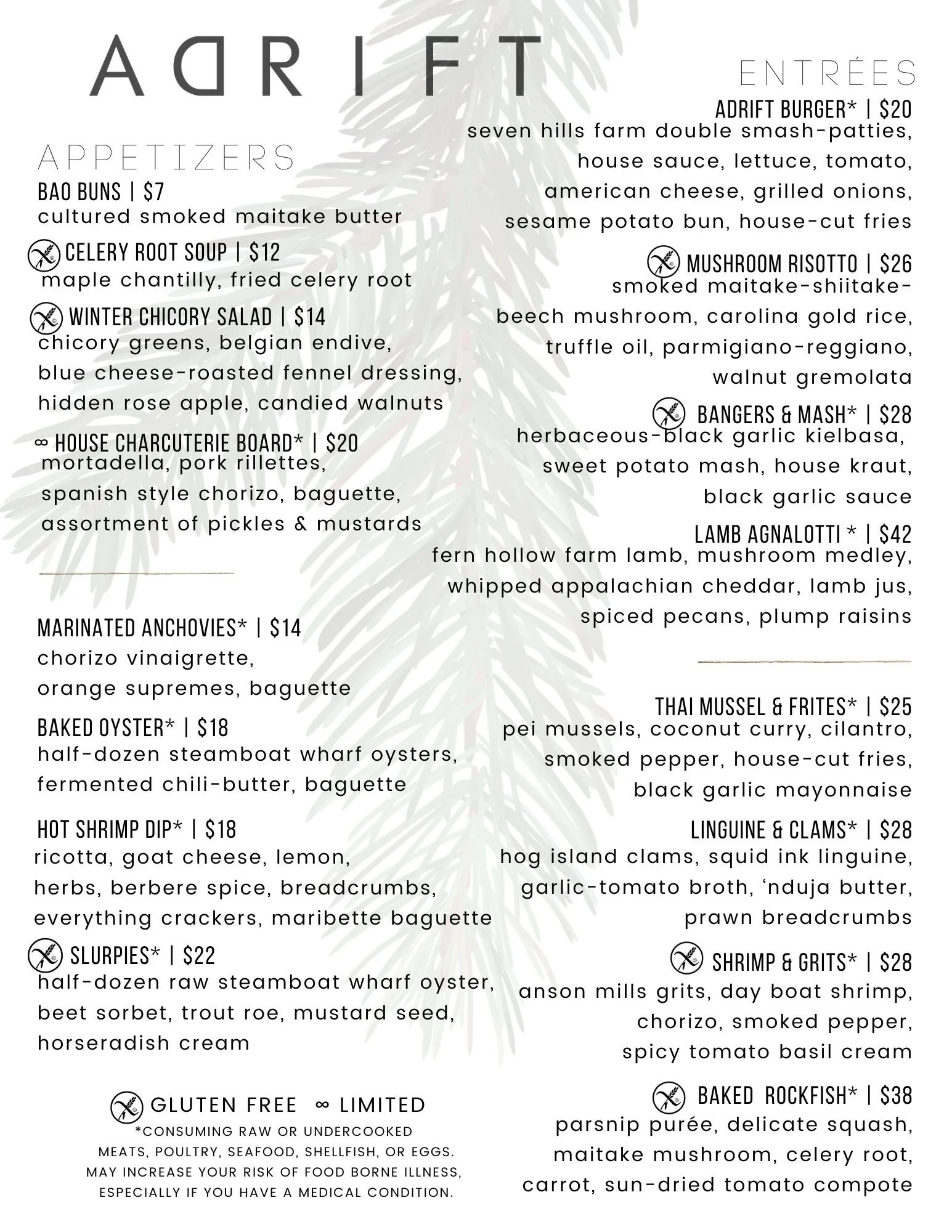 our menu is a sample because it changes daily!